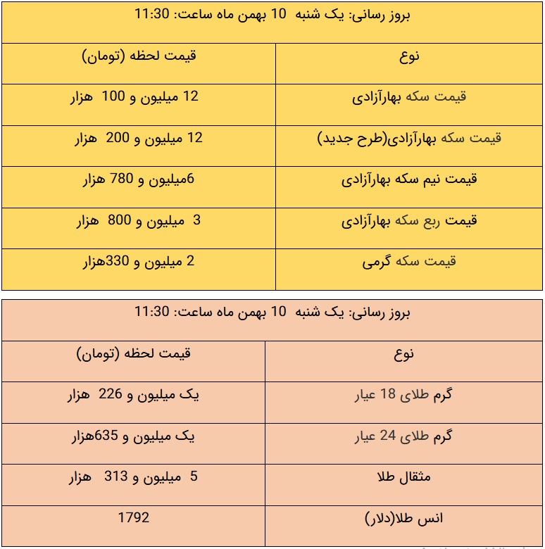 در بازار سبزهمیدان هماکنون، قیمت نیمسکه بهار آزادی ۶ میلیون و ۷۸۰ هزار تومان، ربع سکه بهار آزادی ۳ میلیون و ۸۰۰ هزار تومان و سکه یکگرمی ۲ میلیون و ۳۳۰ هزار تومان تعیین شده است و به فروش میرسد.