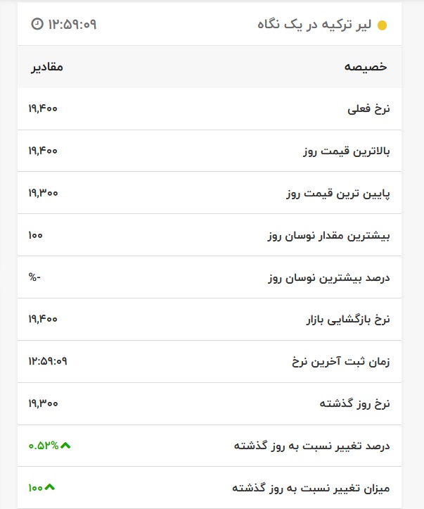 قیمت لیر ترکیه، امروز ۲۱ بهمن ۱۴۰۰