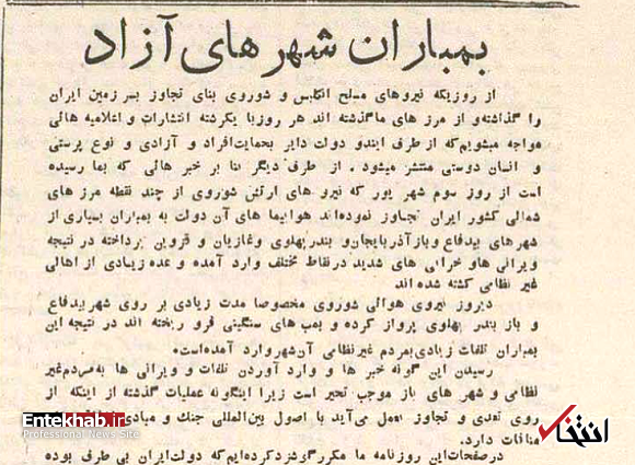 در صفحات این روزنامه [اطلاعات] ما مکرر گوشزد کردهایم که دولت ایران بیطرف بوده و ایرانیان آرزویی جز حفظ صلح و آرامش نداشته و در صدد جنگ با هیچ دولتی نبودهاند با این حال نمیدانیم که نیروی هوایی شوروی از روی چه اصول و مطابق چه رویهای مبادرت به چنین عملیات تجاوزکارانه میکنند.