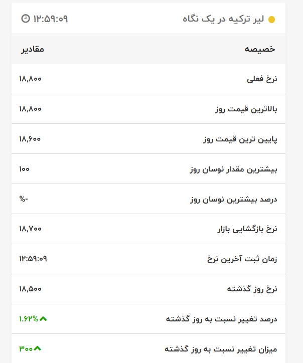 قیمت لیر ترکیه، امروز ۲۲ اسفند ۱۴۰۰