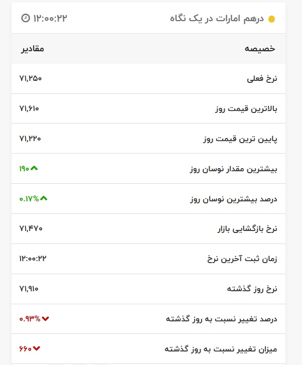 قیمت درهم امارات، امروز ۲۳ اسفند ۱۴۰۰