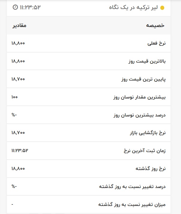 قیمت لیر ترکیه، امروز ۲۴ اسفند ۱۴۰۰