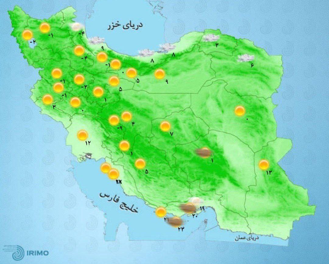 وضعیت آب و هوا، امروز ۹ فروردین ۱۴۰۱ / خیزش گرد و خاک در نوار شرق و جنوب شرق کشور/ رگبار پراکنده در برخی استان‌ها
