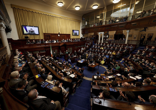 به گزارش وبسایت ایندیپندنت، سناتورها و ۴۵ دیپلمات خارجه در پارلمان ایرلند گردهم آمدند تا این سخنرانی ولودیمیر زلنسکی، رئیس جمهوری اوکراین را بشنوند؛ رئیس جمهوری که کشورش ششمین هفته جنگ با روسیه را سپری میکند.
