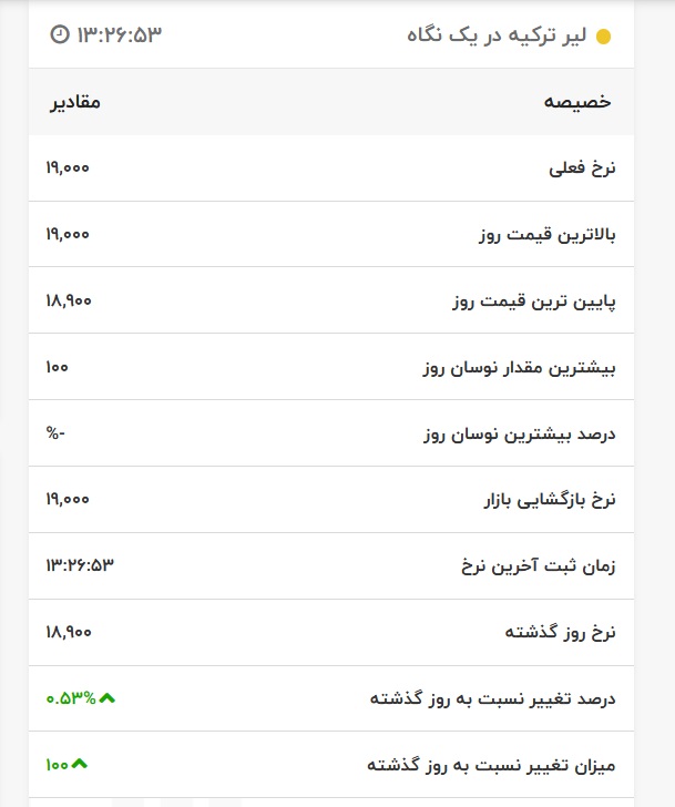 قیمت لیر ترکیه، امروز ۲۰ فروردین ۱۴۰۱