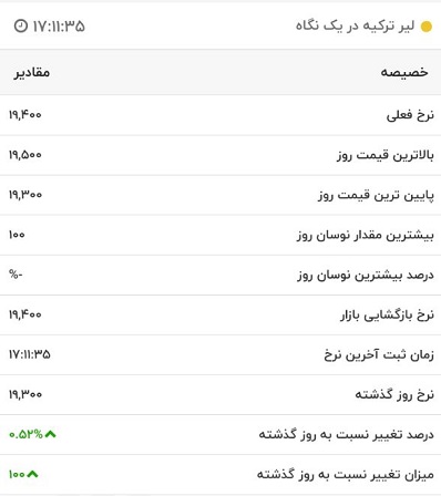 قیمت لیر ترکیه، امروز ۲۳ فروردین ۱۴۰۱