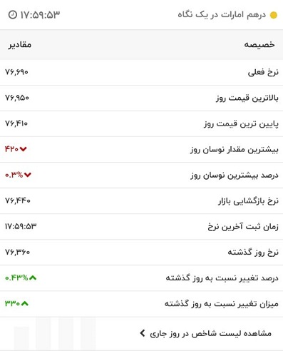 قیمت درهم امارات، امروز ۲۳ فروردین ۱۴۰۱