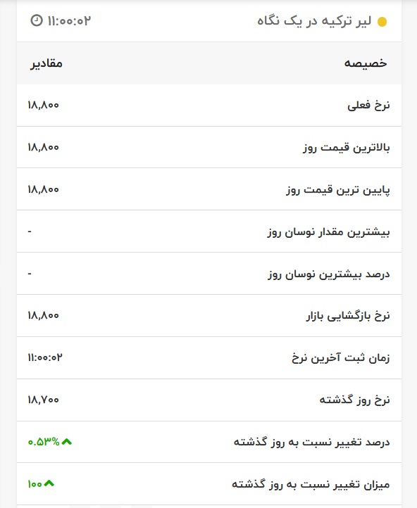 قیمت لیر ترکیه، امروز ۷ خرداد ۱۴۰۱