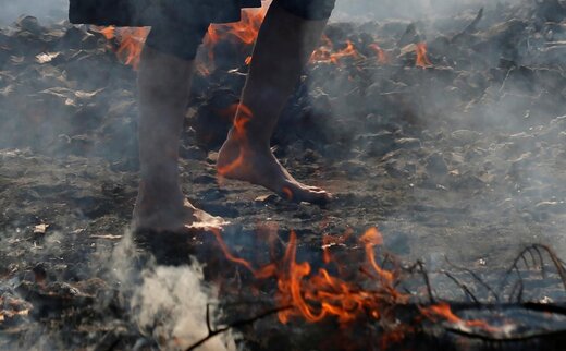 راه‌ رفتن روی زغال گداخته ۱۳ نفر را راهی بیمارستان کرد