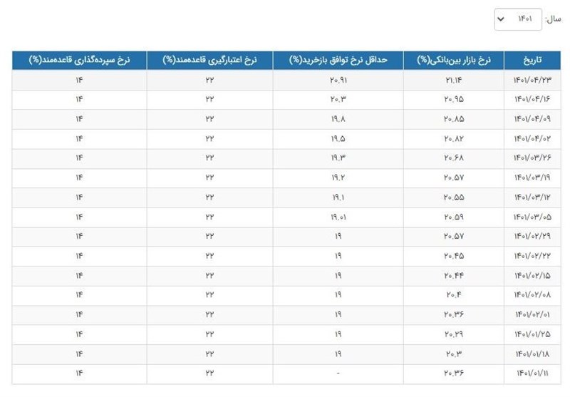 نرخ سود بین‌بانکی در روز‌های اخیر وارد کانال ۲۱ درصدی شده و به بالاترین سطح در سال ۱۴۰۱ رسیده است. در هفته منتهی به ۲۳ تیر ماه نرخ سود بین‌بانکی برابر با ۲۱.۱۴ درصد بوده که بیشترین میزان نرخ بهره بین‌بانکی در سال جاری است.