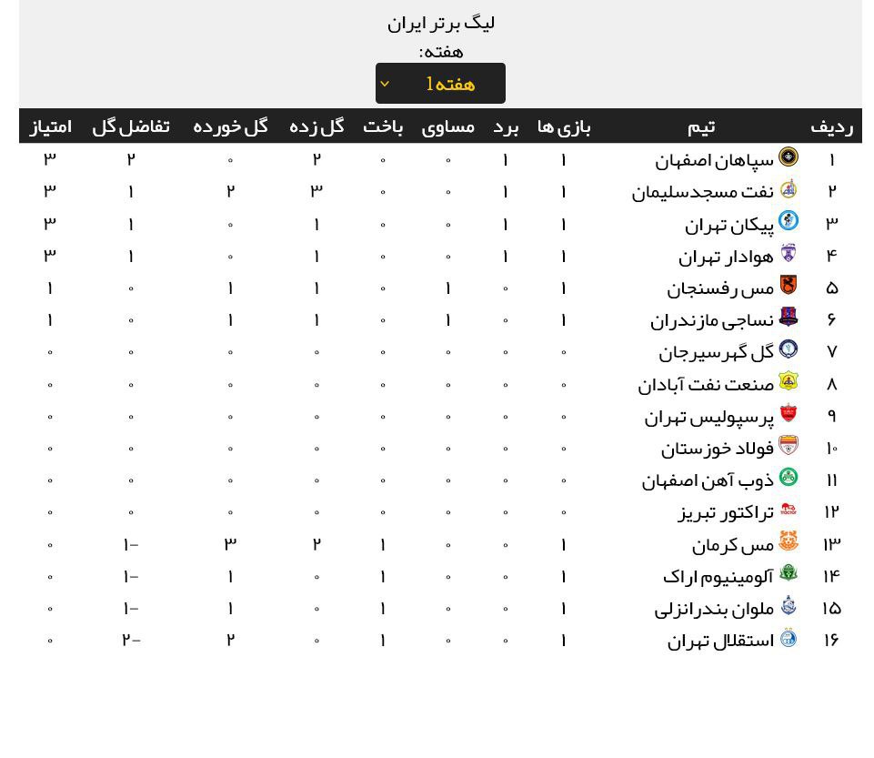در پایان دیدارهای روز نخست هفته اول تیم فوتبال استقلال با قبول شکست دو بر صفر برابر سپاهان قعرنشین جدول شده و در رده شانزدهم قرار گرفت.