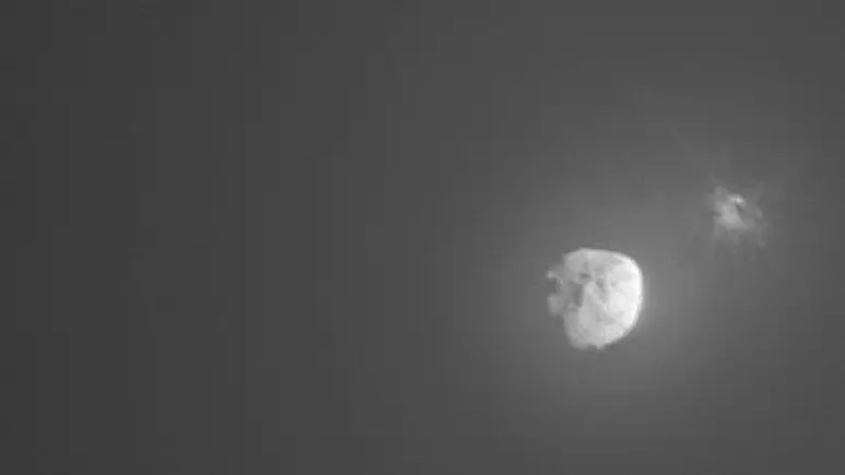 سیارک دیمورفوس، قمر سیارکی با اندازه ۵ برابر بزرگتر به نام دیدیموس است که مواد تشکیل دهنده دیمورفوس را در فضا پراکنده میکند.