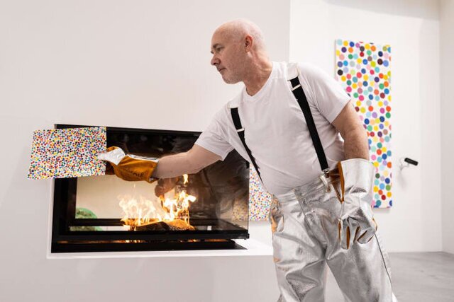 روز سه‌شنبه، دود از گالری «دیمن هرست» در لندن بیرون خارج می‌شد، چراکه ۱۰۰۰ عدد از نقاشی‌های مشهور نقطه‌ای این هنرمند در شعله‌های آتش سوختند. هزاران نقاشی دیگر نیز در ماه میلادی جاری به خاکستر تبدیل خواهند شد. اما در آتش سوختن این نقاشی‌ها اتفاقی نبود. تمام فضای طبقه دوم گالری دو طبقه این هنرمند مملو از بوی سوختگی شده بود و چندین روزنامه‌نگار و دوربین، «هرست» ۵۷ ساله را حین در آتش انداختن نقاشی‌هایش تماشا می‌کردند. این مراسم که به طور زنده از اینستاگرام پخش می‌شد، بخشی از پروژه‌ای است که ۶ سال پیش با خلق ۱۰،۰۰۰ نقاشی نقطه‌ای منحصربفرد آغاز شده بود.