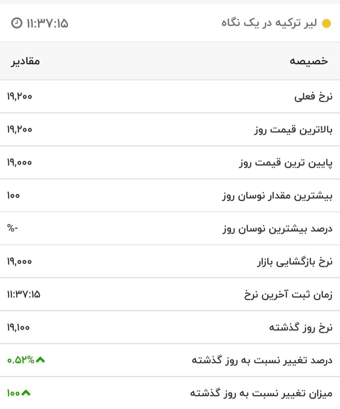 قیمت لیر ترکیه، امروز ۲۳ آبان ۱۴۰۱