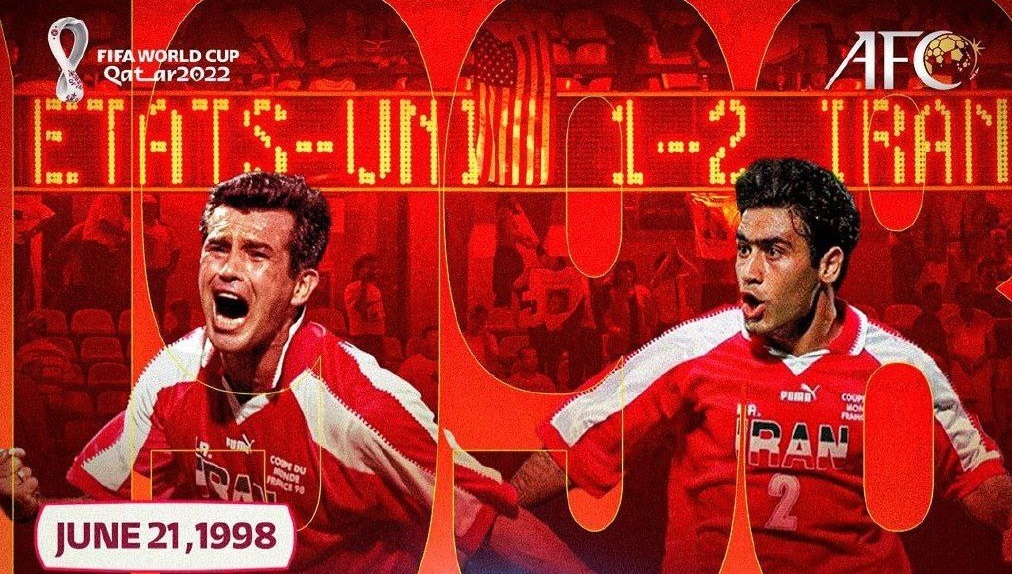 اشاره کنفدراسیون فوتبال آسیا به پیروزی ارزشمند و تاریخی ایران برابر آمریکا در جام جهانی ۱۹۹۸ می دهد که ایران در آن بازی با گل های استیلی و مهدوی کیا به پیروزی دست پیدا کرد و سه امتیاز ارزشمند را به دست آورد.