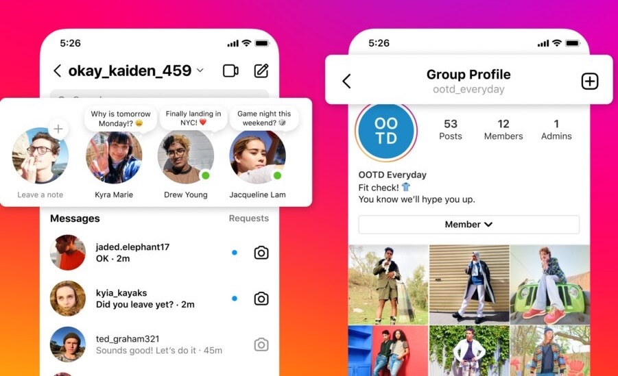 اینستاگرام قابلیت‌های Notes و پروفایل‌های گروهی را منتشر کرد