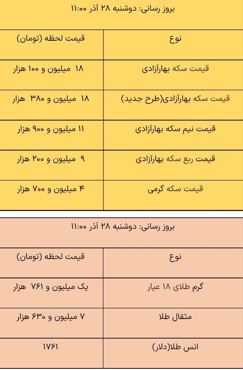 قیمت طلا و سکه، امروز ۲۸ آذر ۱۴۰۱