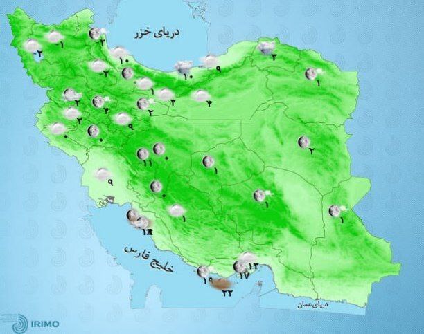 وی افزود: پنجشنبه (۸ دی) نیز در برخی مناطق کرمان، سیستان و بلوچستان و شرق هرمزگان بارش پراکنده رخ میدهد. همچنین با نفوذ جریانات سرد شمالی به سواحل دریای خزر بارش و کاهش نسبی دما در شرق اردبیل، گیلان و مازندران آغاز میشود. همچنین طی روزهای چهارشنبه و پنجشنبه در جنوب و جنوب شرق کشور وزش باد و کاهش نسبی دما رخ میدهد.