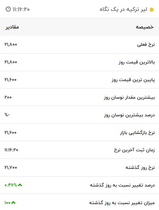 قیمت لیر ترکیه، امروز ۲۰ دی ۱۴۰۱