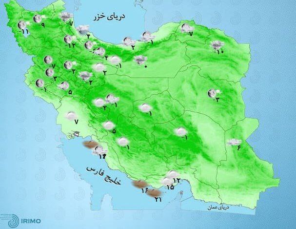 همچنین کارشناس سازمان هواشناسی گفت: امروز صبح دمای کمینه در ایستگاه مهرآباد ۱ درجه زیر صفر شد و بیشینه دما به ۳ درجه بالای صفر می‌رسد.
