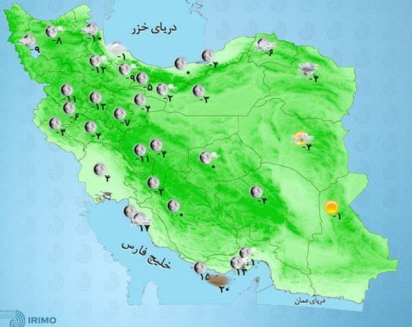 به گفته رئیس مرکز ملی پیشبینی و مدیریت بحران مخاطرات وضع هوا دوشنبه (۲۴ بهمن) بارش در شمال خراسان رضوی، خراسان شمالی، ارتفاعات و دامنههای زاگرس مرکزی در استانهای کهگیلویه و بویراحمد چهارمحال و بختیاری، لرستان، همدان، غرب و جنوب اصفهان، شمال و غرب فارس و شمال و نوار شرقی خوزستان ادامه خواهد داشت و در شمال غرب، غرب، دامنههای جنوبی البرز و سواحل دریای خزر بارش پراکنده رخ میدهد.