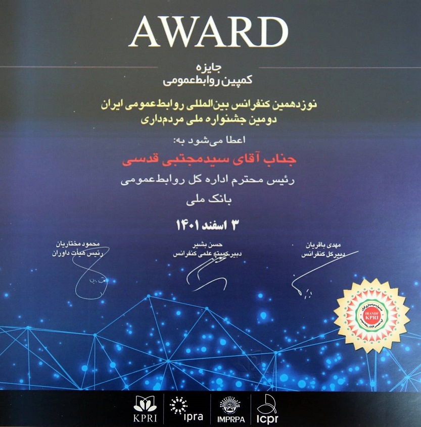 كسب جايزه بهترين كمپين تبليغاتي توسط روابط عمومي بانک ملی ایران