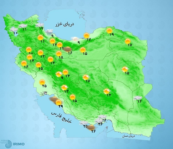 ( ۱۲ اسفند) نیمه ابری همراه با غبار صبحگاهی و از بعد از ظهر وزش باد شدید با حداقل دمای ۹ و حداکثر دمای ۲۱ و روز شنبه (۱۳ اسفند) نیمهابری تا ابری در بعضی ساعات بارش پراکنده و گاهی وزش باد با حداقل دمای ۱۰ و حداکثر دمای ۲۲ درجه سانتیگراد پیشبینی میشود.