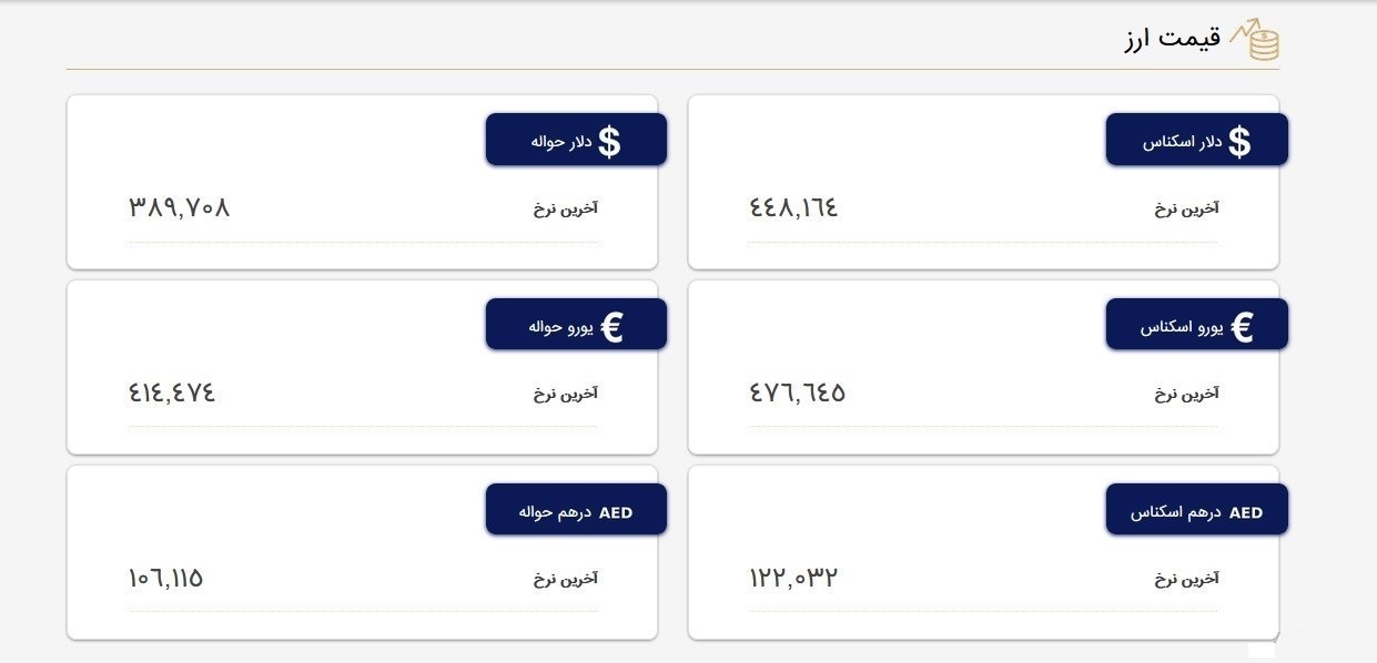 از ۸ اسفندماه علاوه بر قیمت‌های اسکناس و حواله دلار، قیمت اسکناس و حواله یورو و درهم نیز در سایت بازار متشکل درج می‌شود؛ بر همین اساس نیز نرخ اسکناس یورو ۴۷ هزار و ۶۶۵ تومان، و نرخ حواله یورو ۴۱ هزار و ۴۴۷ تومان اعلام شده است.