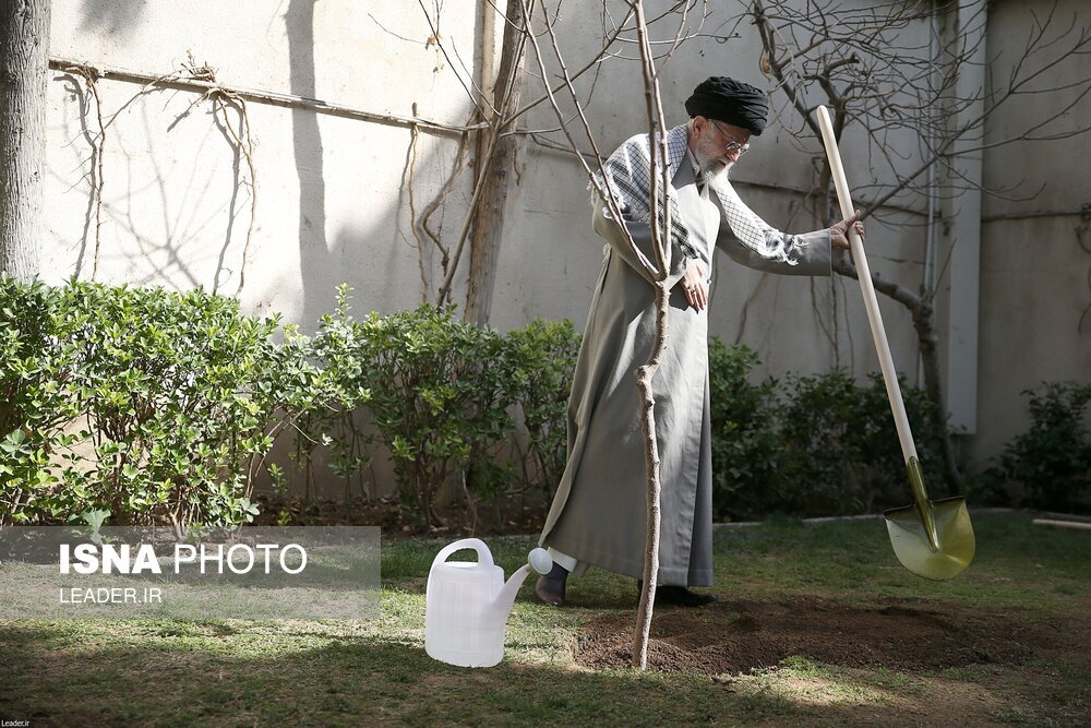 مقام معظم رهبری صبح دوشنبه ۱۵ اسفند همزمان با روز درختکاری سه اصله نهال میوه کاشتند.