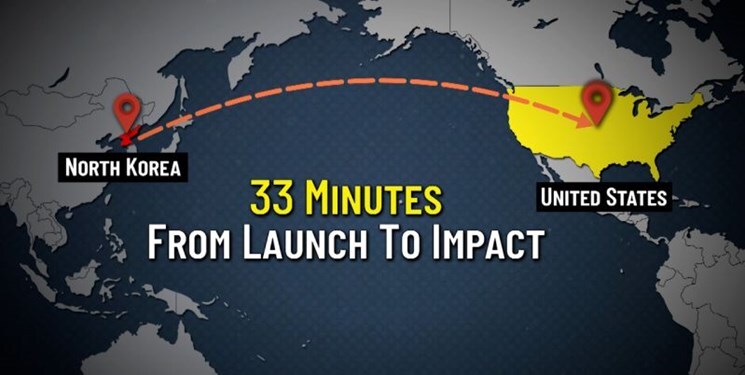 فارس: تیمی از دانشمندان دفاعی در چین ادعا می‌کنند یک موشک بالستیک قاره‌پیما (ICBM) که از کره شمالی شلیک شده باشد، در صورتی که رهگیری نشود، می‌تواند تنها در ۳۳ دقیقه به ایالات متحده اصابت کند. تیمی که حمله را شبیه‌سازی کرد، گفت موشک کره شمالی می‌تواند در هزار و ۹۹۷ ثانیه یا حدود ۳۳ دقیقه مرکز ایالات متحده را هدف قرار دهد.