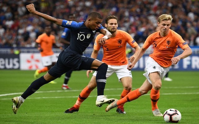 در ادامه بازیهای مقدماتی جام ملتهای اروپا، فرانسه در خانه میزبان هلند بود و توانست با ۴ گل این تیم را در هم بکوبد. کیلیان امباپه(۲ بار)، آنتوان گریزمان و دایوت اوپامکانو برای خروسها در این دیدار گلزنی کردند. در لحظات پایانی این بازی، ممفیس دپای یک پنالتی را برای هلند از دست داد.