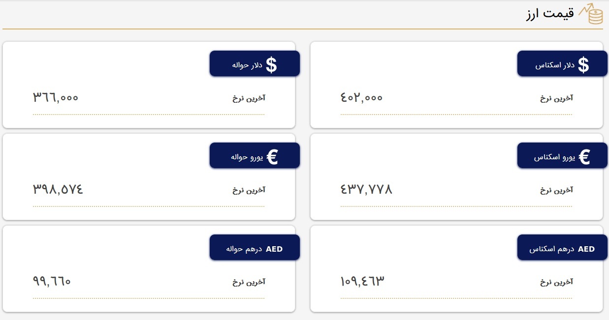 همچنین در مرکز مبادله ارز و طلا نرخ اسکناس درهم بدون تغییر نسبت به دیروز ۱۰ هزار و ۹۴۶ تومان و نرخ حواله درهم نیز ۹ هزار و ۹۶۶ تومان اعلام شده است.