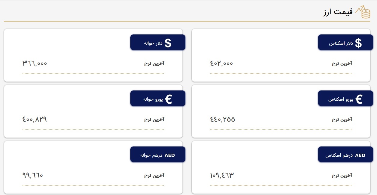 همچنین در مرکز مبادله ارز و طلا نرخ اسکناس درهم بدون تغییر نسبت به دیروز ۱۰ هزار و ۹۴۶ تومان و نرخ حواله درهم نیز ۹ هزار و ۹۶۶ تومان اعلام شده است.