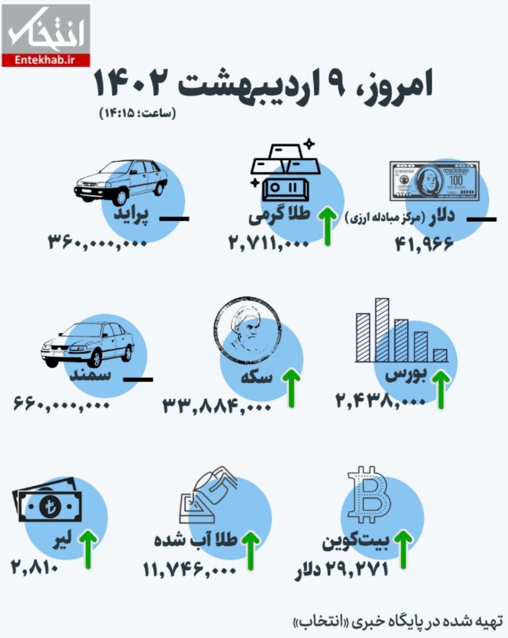 اینفوگرافیک / امروز ۹ اردیبهشت ۱۴۰۲ قیمت ها چقدر است؟