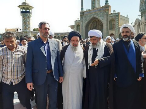 حجت الاسلام سید احمد خاتمی، امروز در مراسم تشییع پیکر آیت الله سلیمانی در قم، در حاشیه مراسم تشییع پیکر آیت الله سلیمانی گفت: در پیام مقام معظم رهبری، مشاهده کردیم که ایشان را به عنوان عالم خدمتگزار توصیف کردند.