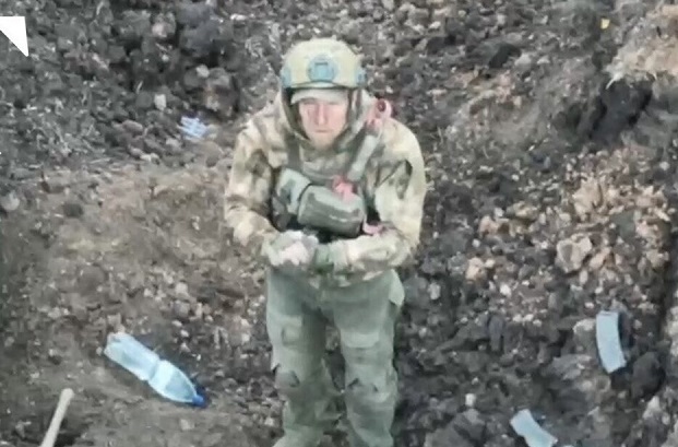 یک سرباز روس که در سنگرهای خارج از شهر باخموت در حال جنگ بود، تسلیم نیروهای اوکراینی شد و توسط یک هواپیمای بدون سرنشین به محل امن هدایت شد. در بخشی از این فیلم سرباز روسی، به پهپاد میگوید که میخواهد از مبارزه دست بکشد و تسلیم شود. پهپاد یادداشتی را میاندازد که توسط اوکراینیها نوشته شده و به او میگوید که پهپاد را دنبال کند. او سپس از روی اجساد سایر سربازان روسی و از سنگر بیرون میآید و در مسیر سنگر اوکراینیها ناگهان مورد تیراندازی قرار میگیرد. این تیراندازی احتمالا توسط نیروهای روسی بوده است. سرباز روسی در نهایت زنده، به سنگر اوکراین میرسد، کلاه و تجهیزات جنگی خود را برمیدارد و خود را به اوکراینیها میسپارد.