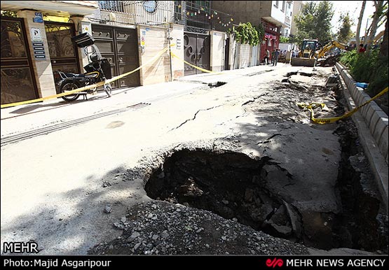 نجاتگران با حضور در صحنه حادثه دریافتند که به دلیل ترکیدگی لوله اصلی آب، پیاده رو و قسمتی از خیابان این منطقه دچار نشست شده است