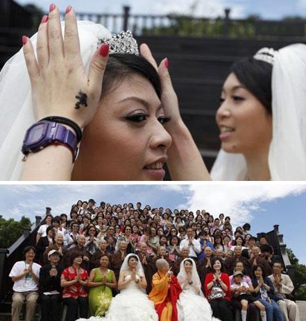 فیش هوانگ و یو یا- تینگ، که مدت ۷ سال است با یکدیگر زندگی می کنند، در صومعه ای در تویایوان، واقع در شمال تایوان، با دعا و هماوایی نزدیک به ۳۰۰ بودایی، به جای حلقه، با یکدیگر تسبیح های دعا رد و بدل کردند و با هم پیمان ازدواج بستند!!