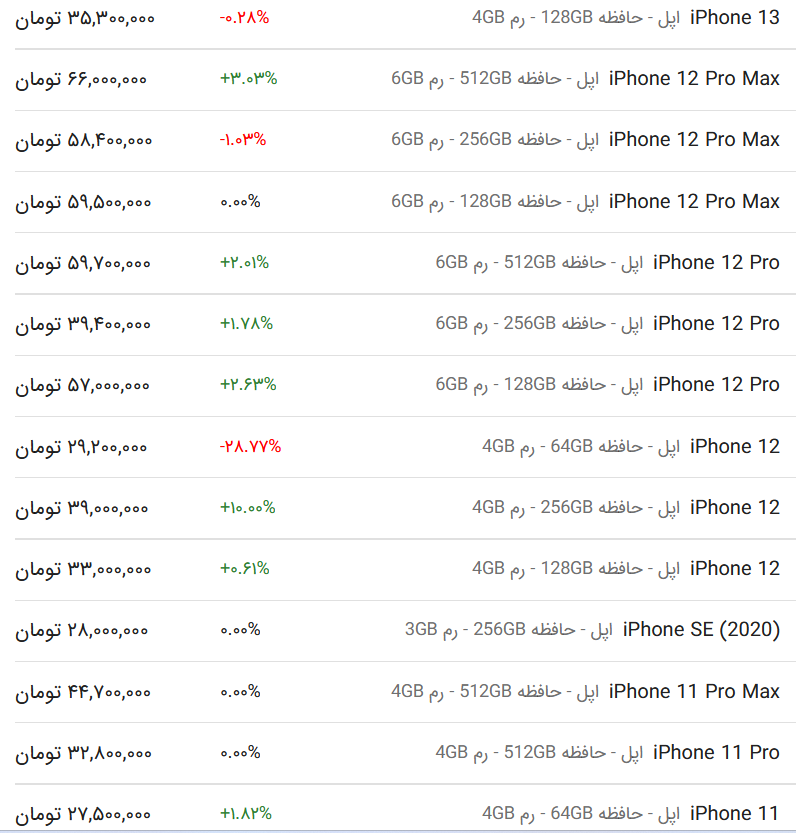 قیمت گوشی اپل، امروز ۶ خرداد ۱۴۰۳ در مدل‌های «-۱۲ poro-se-۱۱-۱۲-۱۳ PORo» به ثبت رسید.