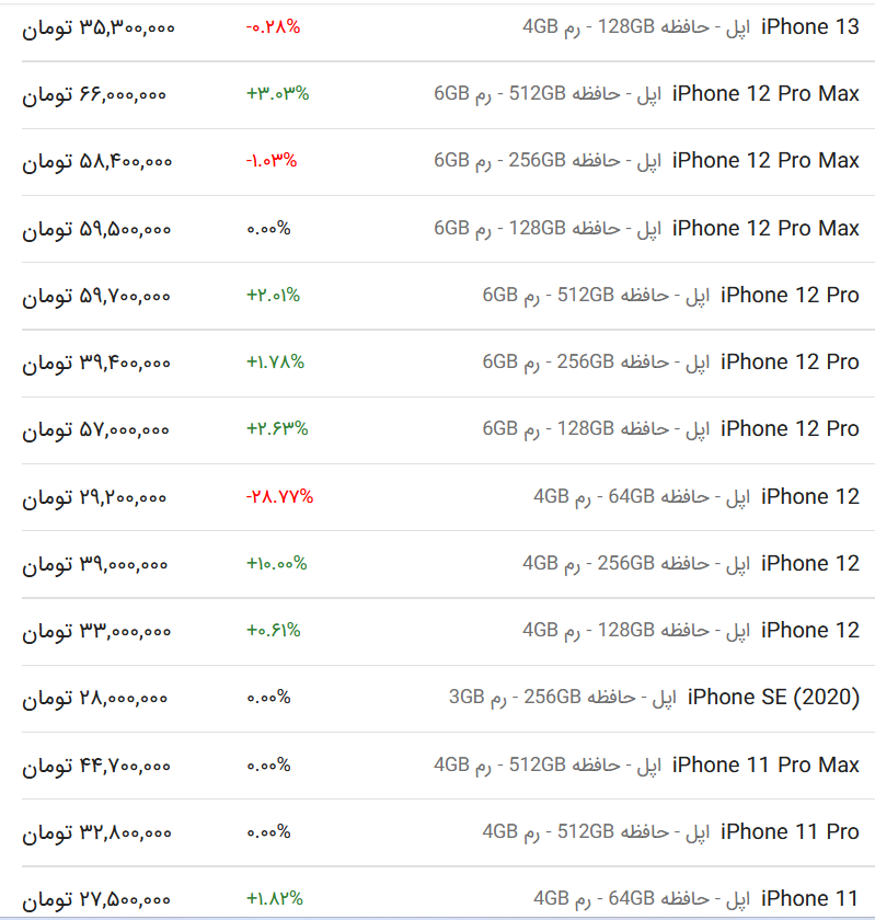 قیمت گوشی اپل، امروز ۸ خرداد ۱۴۰۳ در مدل‌های «-۱۲ poro-se-۱۱-۱۲-۱۳ PORo» به ثبت رسید.