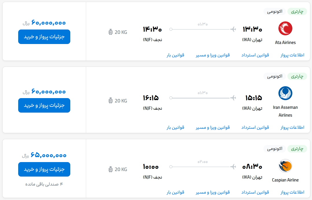 قیمت بلیط هواپیما تهران-نجف، امروز ۸ خرداد ۱۴۰۳