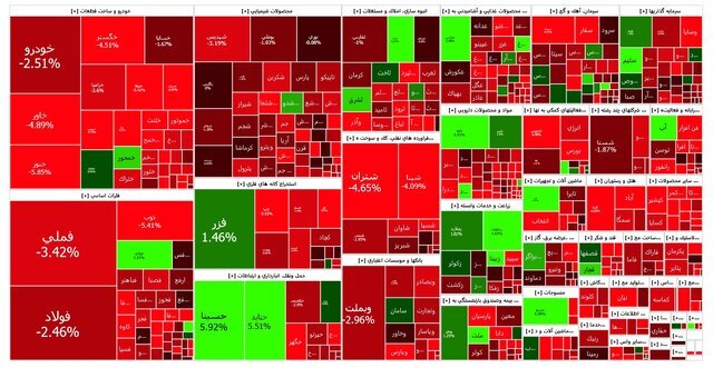 امروز نیز شاخص کل بورس اوراق بهادار تهران با افت ۱.۳۵ درصد ۲۹ هزار و ۱۵۱ واحد کاهش یافت و به دو میلیون و ۱۳۱ هزار و ۸۱۲ واحد رسید.
