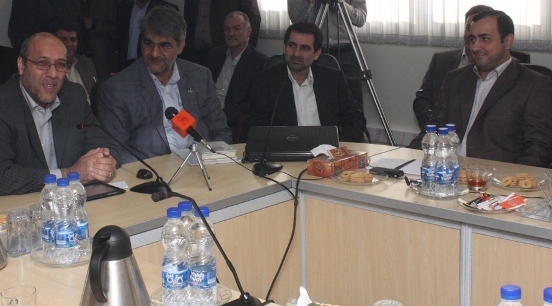 از راست، میثم مظفر مدیرعامل جدید، ناشناس، بافنده مدیرعامل سابق، تشکری هاشمی در معارفه