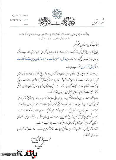 محمد احمدی بافنده مدیرعامل سازمان تاکسیرانی شهر تهران برکنار شد و