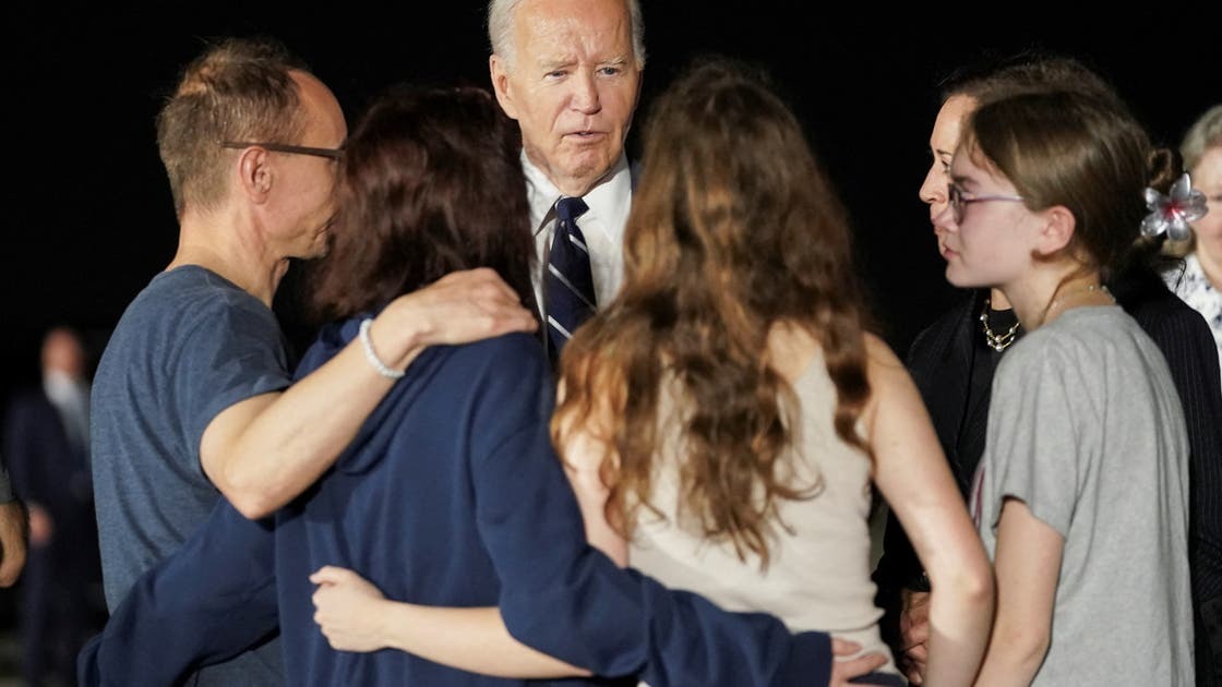 به گزارش «رویترز»، جو بایدن، رئیسجمهوری آمریکا و کامالا هریس معاون رئیسجمهوری از آمریکاییهای آزاد شده از زندانهای روسیه در پایگاه نیروی هوایی اندروز در نزدیکی واشینگتن استقبال کردند.