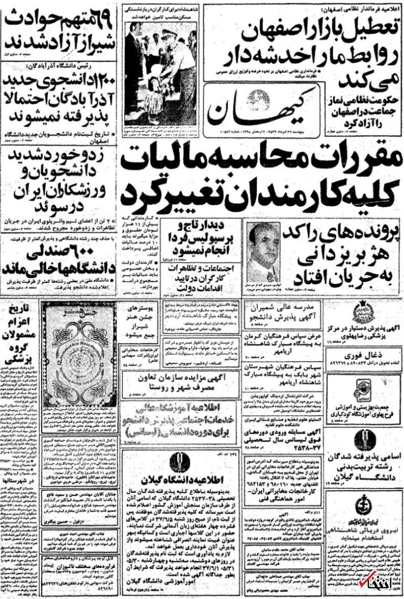 سرویس تاریخ «انتخاب»: روزنامه کیهان در روز ۲۶ مرداد ۱۳۵۷ در صفحه اول خود به موضوعاتی از جمله: