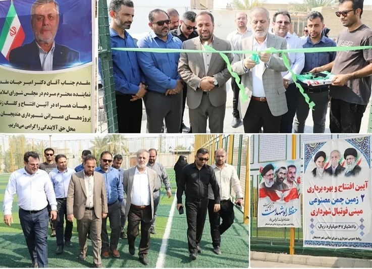 در روز ۷ شهریور سال ۱۴۰۳، دو زمین چمن مصنوعی شهرداری هندیجان با حضور دکتر امیر حیات مقدم،نماینده مردم شریف بندر ماهشهر،بندر امام،امیدیه،بندر هندیجان و بخش جولکی در مجلس شورای اسلامی و فرماندار بندر هندیجان ،اعضای شورای شهر و سایر مسئولان به بهره برداری رسید.