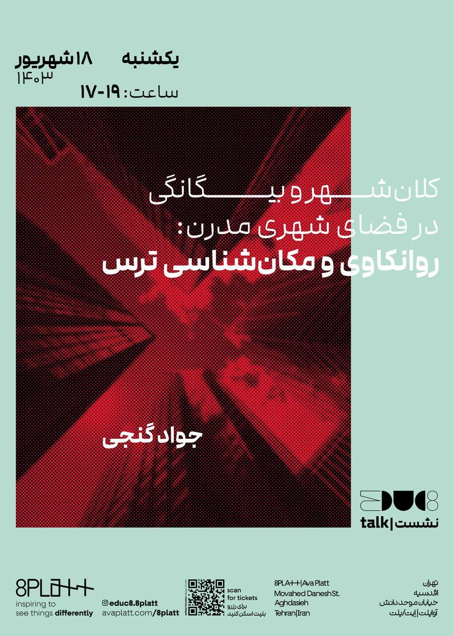 این نشست در پلتفرم هشتم واقع در اقدسیه، خ موحد دانش، نبش خ فیروز بخش، طبقه هشتم برگزار خواهد شد.