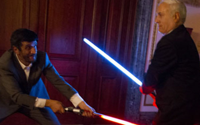 طنز آمیزی را درباره رویارویی احمدی نزاد و نتانیاهو برای تبلیغ برنامه