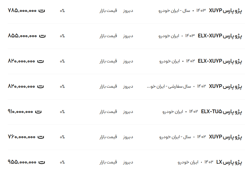سرویس اقتصاد «انتخاب»: قیمت پژو پارس، امروز ۱۰ بهمن ۱۴۰۳ را به شرح زیر میبینیم. پارس در مدلهای «سال LX-TU ۵-ELX-سال دوگانه سوز-اتوماتیک» اعلام شد.